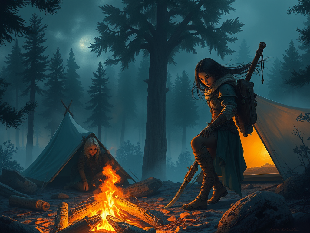 And now I look over and see my best friend gently practicing a sad tune on her lute. She is tired too. Before I close my eyes and whisper goodnight to the darkness, I’ll spend a few minutes cheering up my friend. For the day has been long, and now night is here. There is no more work we can do, but just rest.